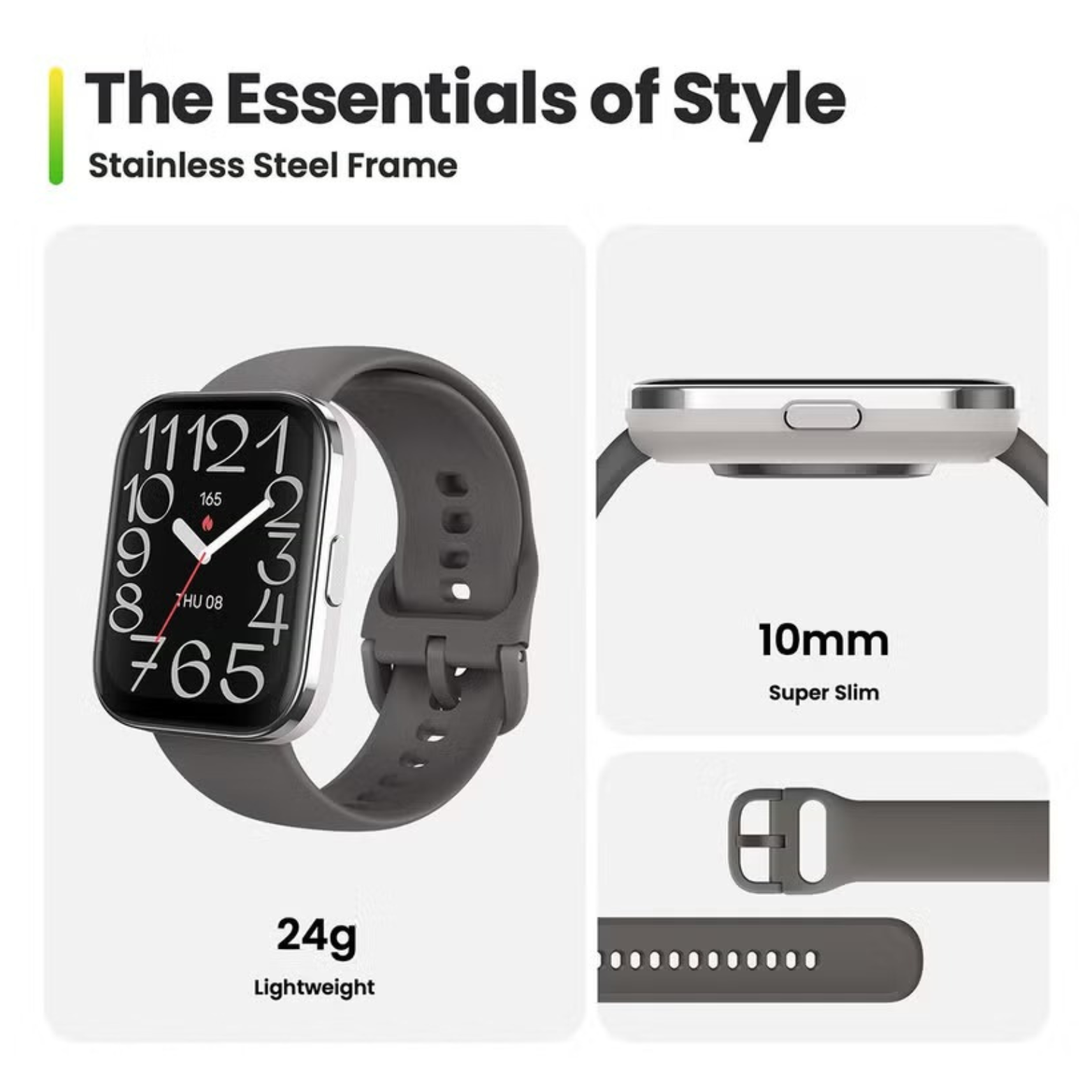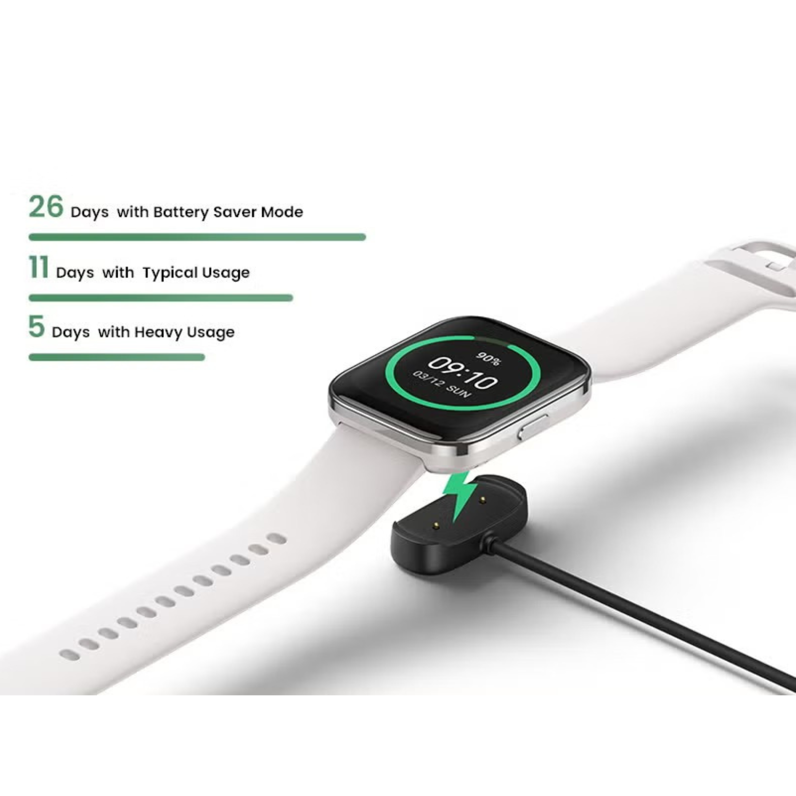 ساعة ذكية (بما في ذلك الحزام القياسي)، كابل شحن مغناطيسي، دليل التعليمات