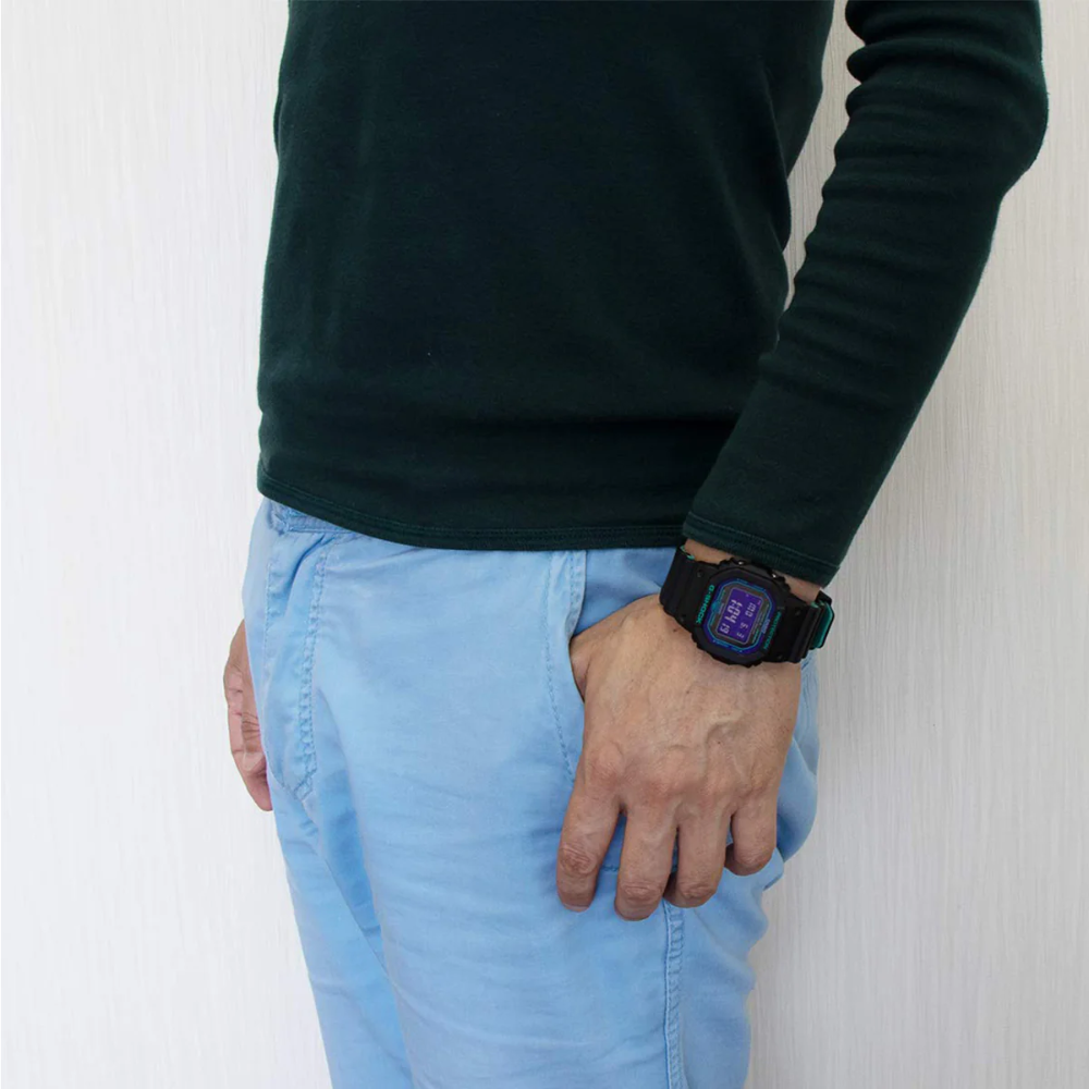 Level up the iconic 5600 silhouette with the Casio G‑Shock GW‑B5600BL‑1DR. This sleek black‑and‑blue square blends heritage design with modern convenience—Bluetooth Smartphone Link for easy setting and auto time updates, Tough Solar power for low‑maintenance reliability, and classic G‑Shock shock resistance for everyday durability. The clean digital display, bright illumination, and essential daily tools (stopwatch, timer, alarms, world time) make it a rock‑solid companion for work, travel, gym sessions, and weekend adventures. Stylish, rugged, and effortlessly versatile, the GW‑B5600BL‑1DR is the smart way to wear the G‑Shock legend.
