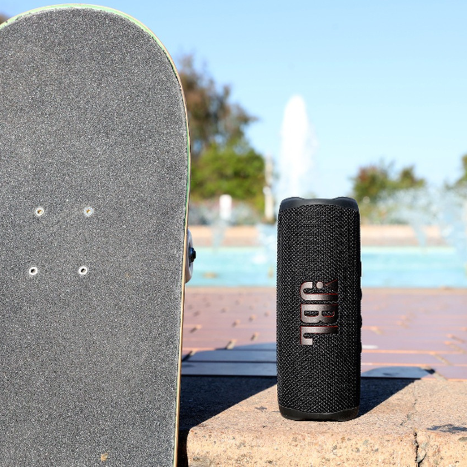 مغامرتك. موسيقاك المفضلة. يُقدّم مكبر الصوت JBL Flip 6 الجريء صوت JBL الأصلي الاحترافي القوي بوضوح استثنائي بفضل نظام مكبرات الصوت ثنائي الاتجاه، الذي يتألف من مُشغّل مُحسّن على شكل حلبة سباق، ومُكبّر صوت عالي التردد منفصل، ومُشعّات جهير مزدوجة. يتميز هذا المكبر الصوتي القوي، وسهل الحمل في الوقت نفسه، بمقاومته للماء والغبار، ما يُتيح لك اصطحابه معك في أي مكان وفي أي طقس. ومع عمر بطارية يدوم 12 ساعة، يُمكنك الاستمتاع بالحفلات حتى غروب الشمس - أو شروقها - أينما تُحرّكك الموسيقى. استخدم خاصية PartyBoost لربط عدة مكبرات صوت متوافقة. يتوفر Flip 6 بمجموعة متنوعة من الألوان الرائعة.