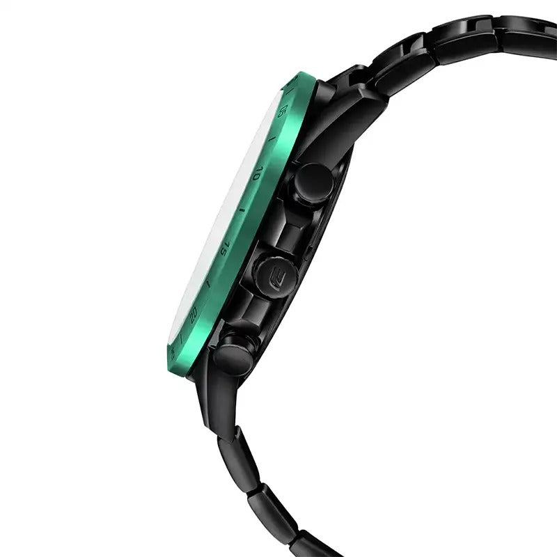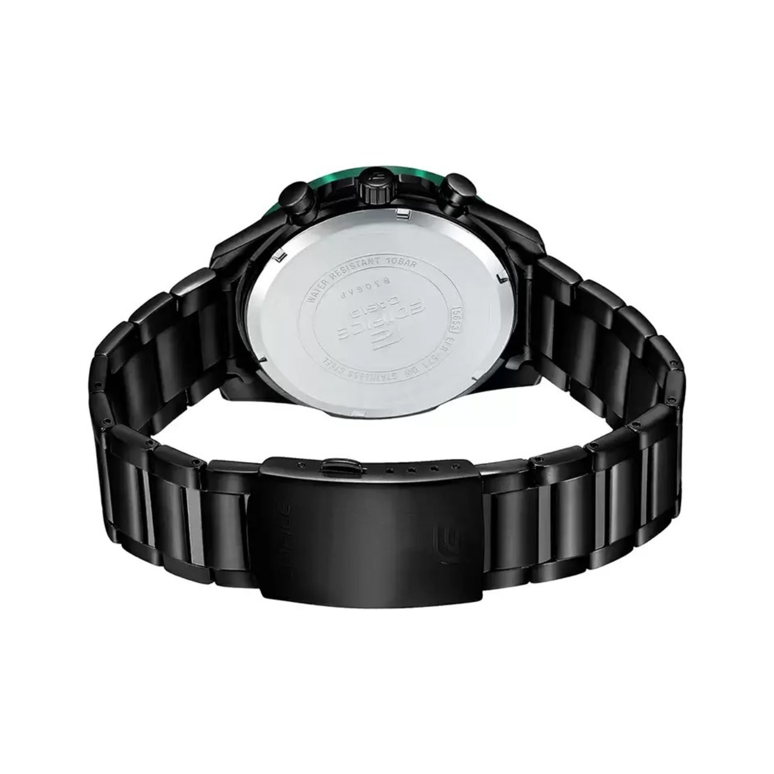 Command attention with the Casio Edifice EFR‑571DC‑1AVUDF, a striking chronograph designed for those who demand style and precision. Wrapped in a black ion‑plated stainless steel case and bracelet, this timepiece features a bold green-ion-plated bezel, a dynamic multi‑dial layout, and a retrograde subdial—making it a high-contrast statement on the wrist.