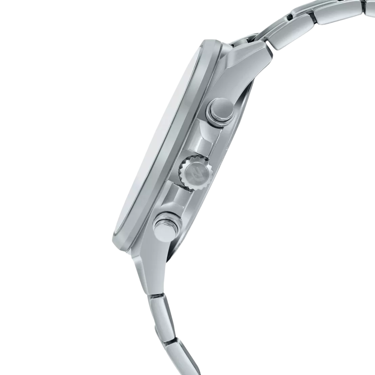 Case/Bracelet: Stainless steel with fold-over safety clasp