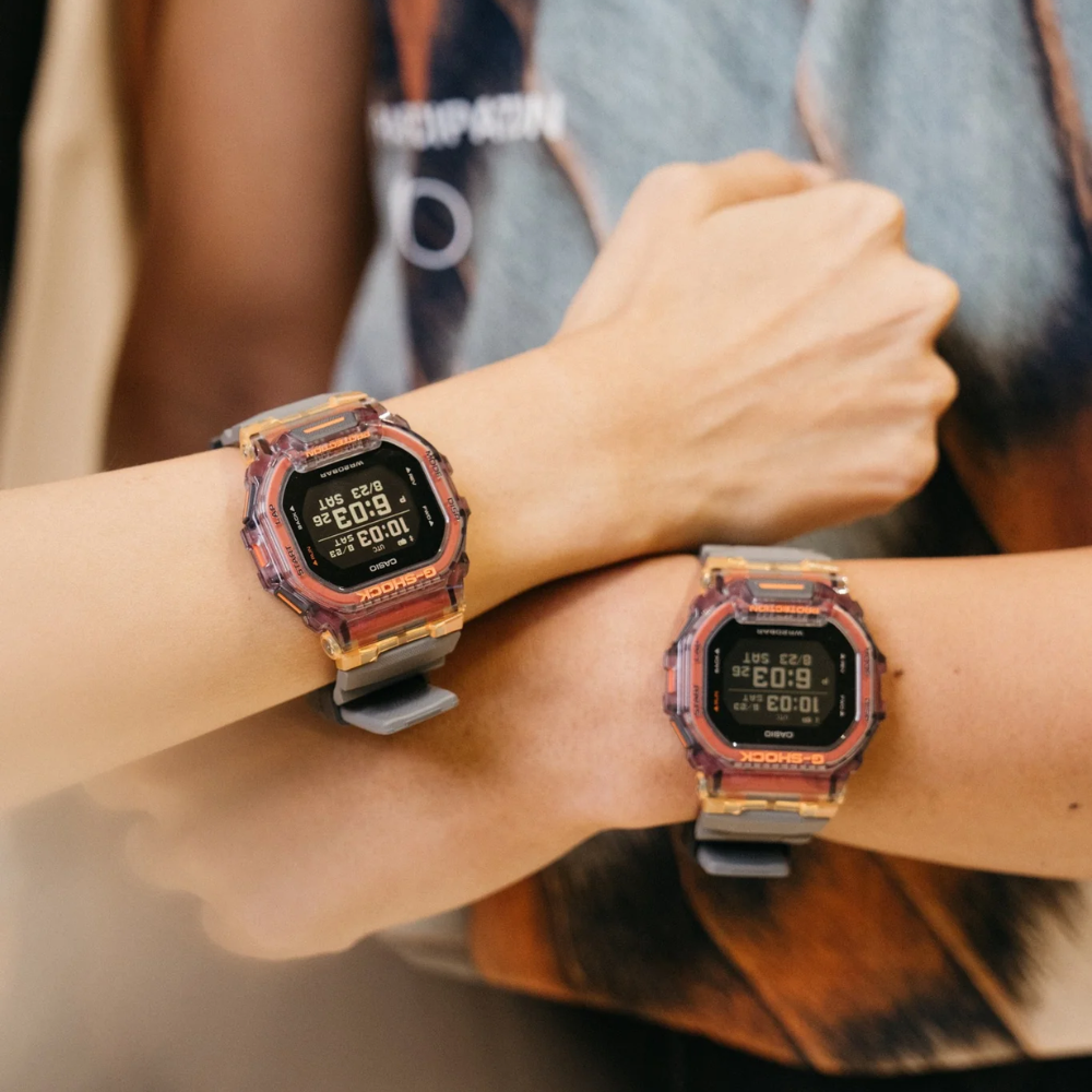 Push your training with the Casio G‑Shock GBD‑200SM‑1A5DR. This slim square G‑Shock blends rugged durability with smart fitness features—Bluetooth Smartphone Link via G‑SHOCK MOVE, step tracking and distance data, vibration alerts for alarms/timers, and easy auto time sync. The translucent/black design with beige accents delivers street‑sport style that’s tough enough for workouts, runs, and daily wear. Clear digital display, comfortable resin band, and legendary G‑Shock protection make it a reliable, go‑anywhere companion for athletes and active lifestyles.