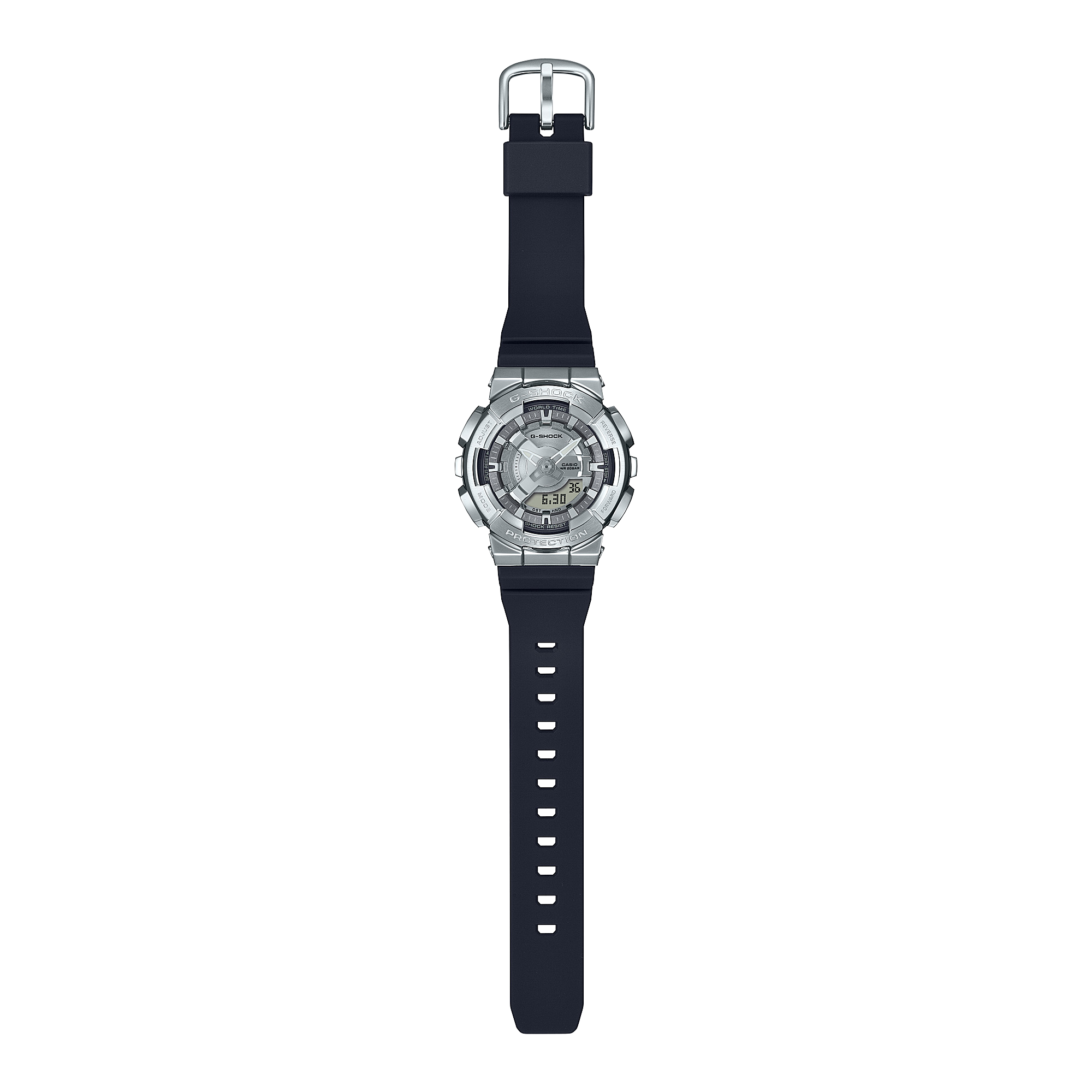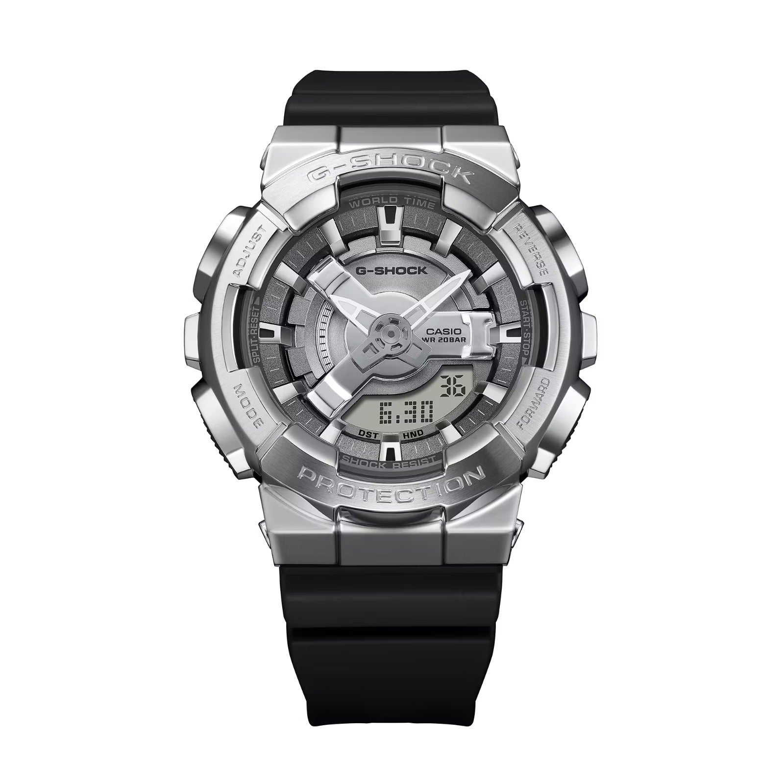 The CASIO G-SHOCK GM-S110-1ADR is a bold yet compact G-SHOCK made for women who want metal strength in a modern silhouette. This watch features a forged stainless steel bezel, layered black-on-black design, and a semi-skeleton analog-digital display that adds depth and dimension to its aesthetic. Part of the GM-S110 series, this model blends street style with G-SHOCK's signature durability.