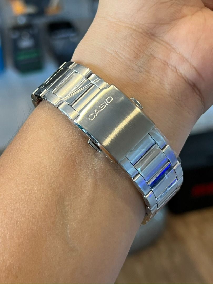 Meet the Casio MTD‑125D‑3AV — a standout men’s analog timepiece that blends bold sport styling with everyday practicality. With its striking green sunburst dial, durable stainless steel case & bracelet, and 100‑meter water resistance, this dive‑inspired watch is ready for both poolside and daily wear. Built by Casio’s acclaimed Standard series, the MTD‑125D‑3AV features reliable Japanese quartz movement, a day & date display (English/Spanish options), a screw‑down crown, anti‑reverse bezel, and luminous hands for clear visibility even in low light. The size is approx. 46.5 × 45.6 × 10.4 mm with a weight of 122 g. Accurate to ±20 seconds per month — in a sharp colorway that elevates your wrist game. Whether you’re shopping for a dynamic sport dress watch or a gift that stands out, the Casio MTD‑125D‑3AV delivers form, function, and value.
