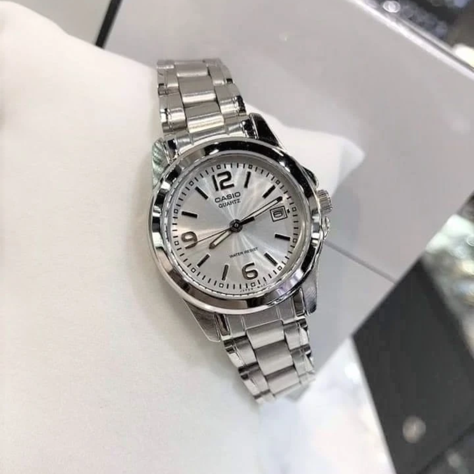 Keep your everyday style sharp with the CASIO MTP-1215A-7ADF, a clean men’s standard analog watch that pairs a crisp white dial with a durable stainless steel case & bracelet. Powered by reliable quartz movement, it features a practical date window, luminous hands/markers for quick reads, mineral glass for durability, and 50-meter water resistance for worry-free daily wear. If you want an affordable, timeless Casio dress watch that’s built to last, the MTP-1215A-7ADF delivers classic looks and dependable performance.