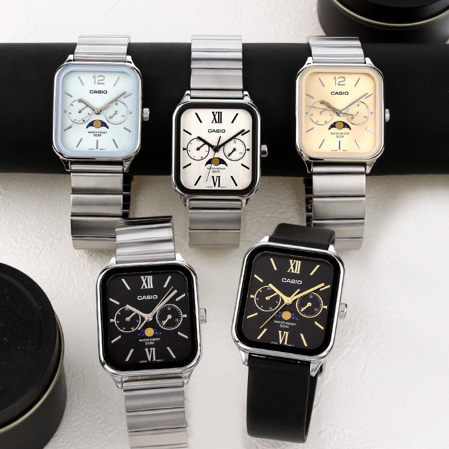 Perfect for business attire or formal occasions, the CASIO MTP-M305D-9AVDF includes multi-functional subdials displaying the day, date, and 24-hour time, powered by precision Japanese quartz movement. Its robust mineral glass, 50-meter water resistance, and durable construction make it both sophisticated and practical.