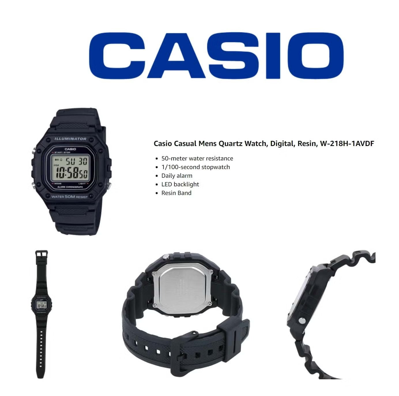 Casio W-218H-1AVDF, W218H 1A, men’s digital Casio, 50M water resistant watch, LED backlight digital watch, Casio stopwatch alarm, resin strap digital watch, quartz digital timepiece, everyday sport watch, classic square Casio