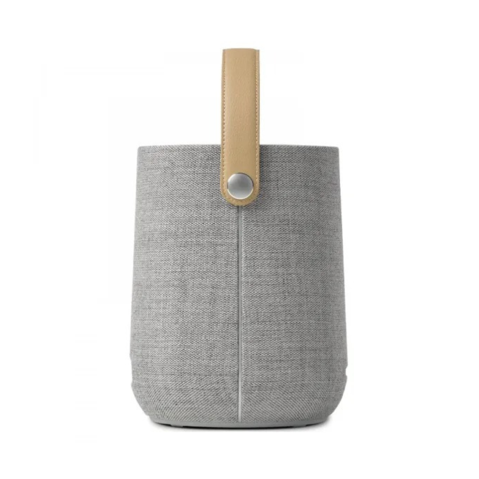 IPX4 splash‑resistant design plus premium wool‑blend fabric finish and convenient carry handle for portability.