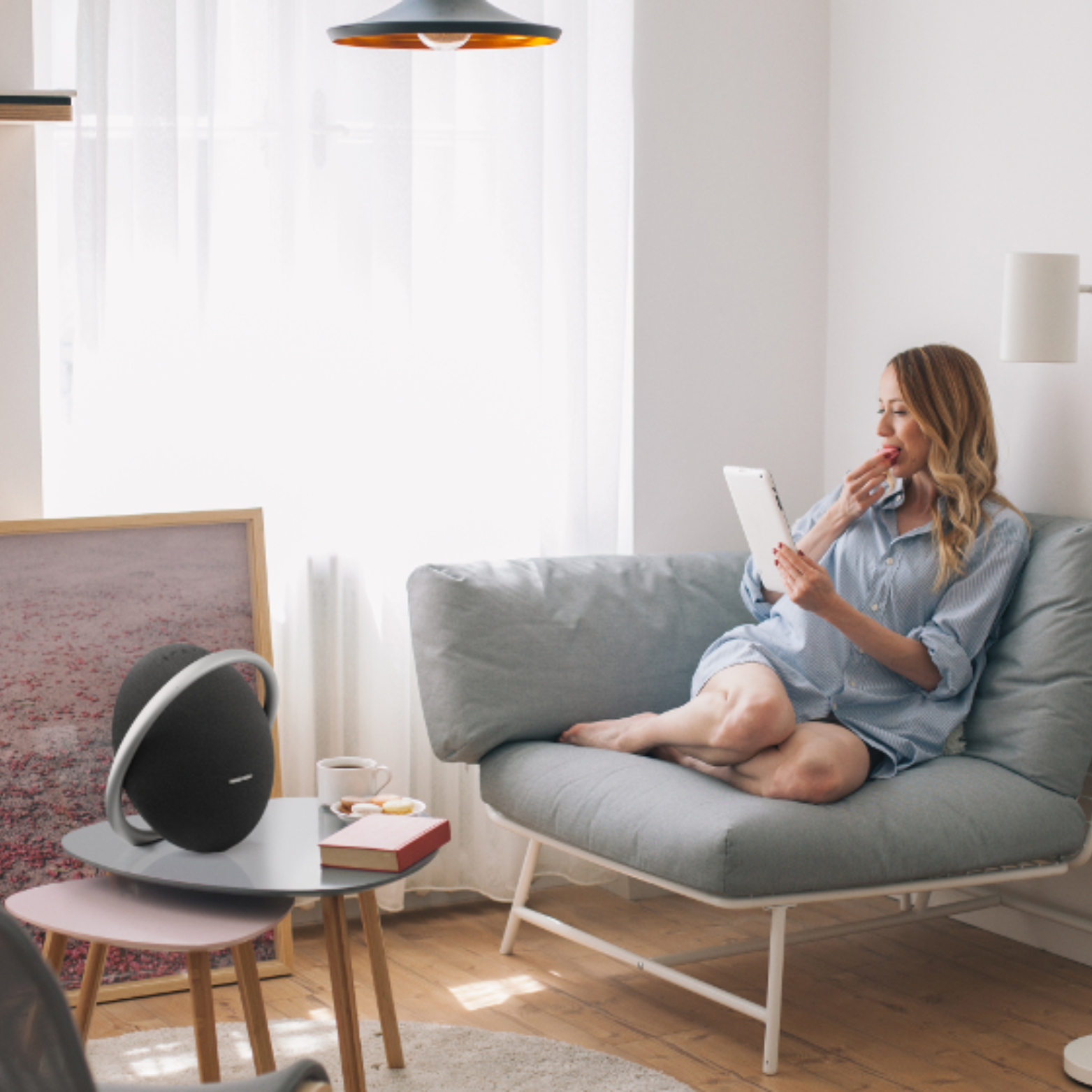 Self‑tuning feature: optimises sound automatically when moved to a new space.