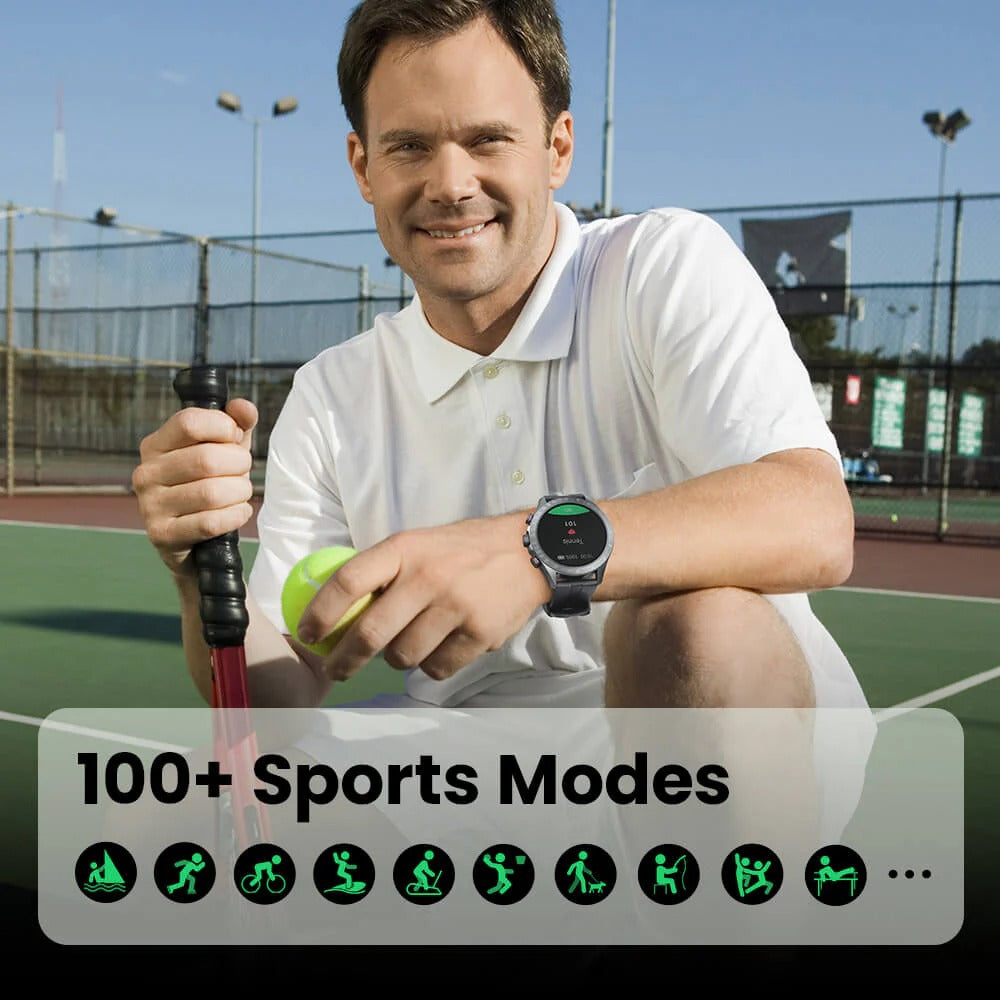 Fitness Tracking: 105 workout modes and health monitoring.