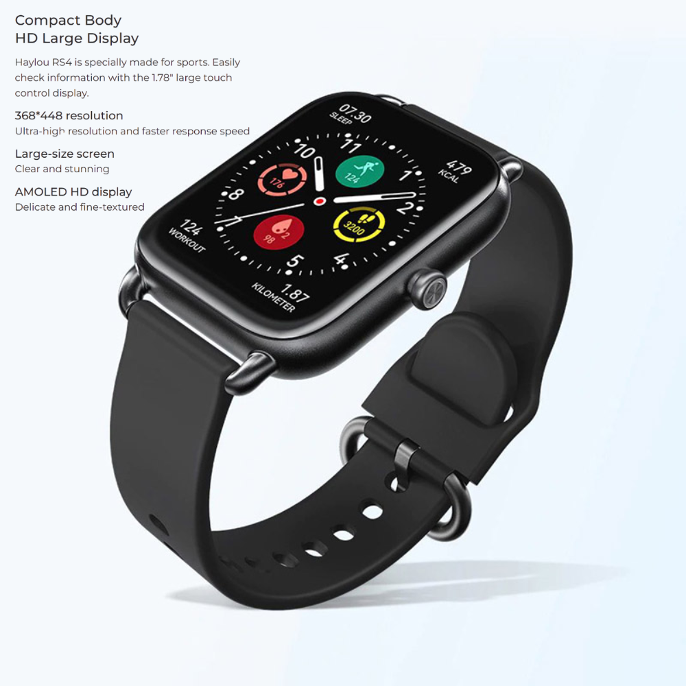 Elevate your style and performance with the Haylou Solar RS4 (RS34) Global Smartwatch, a perfect fusion of elegant design and cutting-edge fitness technology. Featuring a stunning 1.78” AMOLED display with vibrant colors and ultra-slim bezels, the RS4 brings every notification, health stat, and workout detail to life.