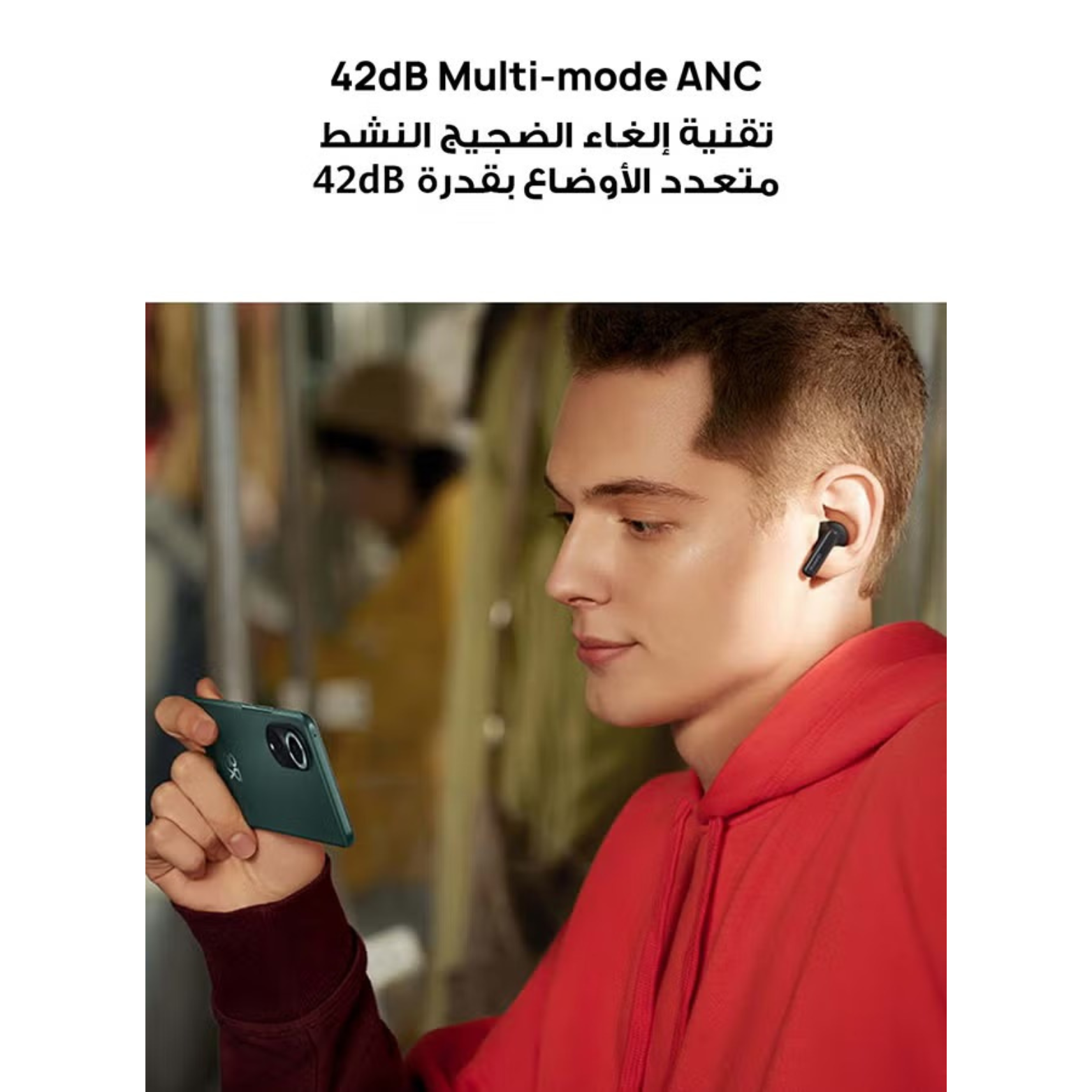 Hybrid ANC up to 42 dB + Awareness mode