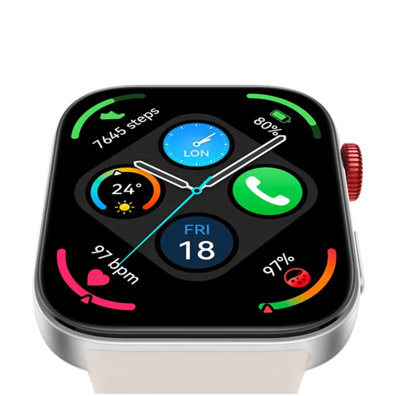 Health & fitness: 100+ modes, HR, SpO₂, sleep & stress tracking.