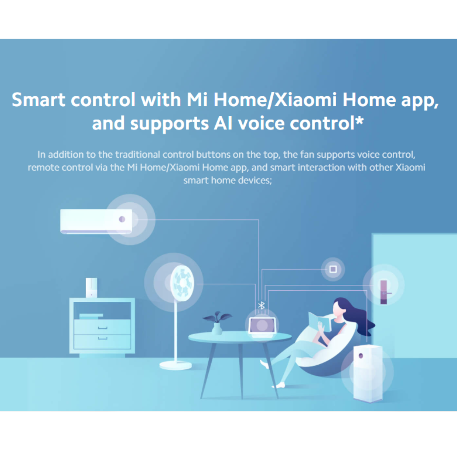Control it via the Mi Home / Xiaomi Home app, or with voice commands using Google Assistant or Amazon Alexa for seamless smart‑home integration. With its energy‑efficient brushless DC motor (24 W) and ultra‑quiet design (noise ≤ 58 dB), it’s perfect for bedrooms, living rooms or workspace environments.